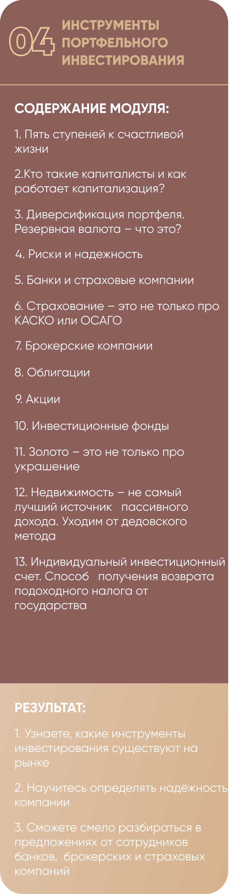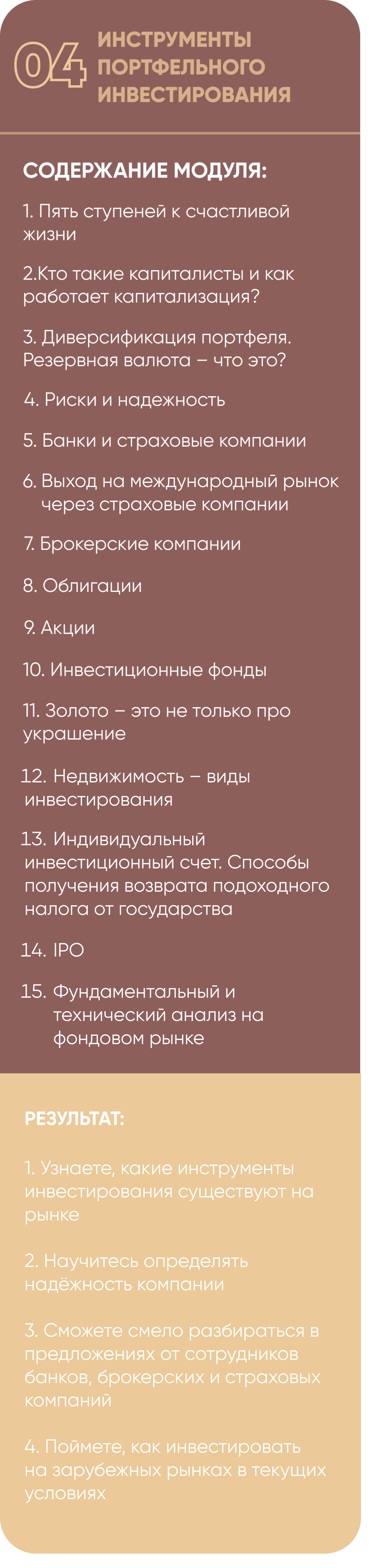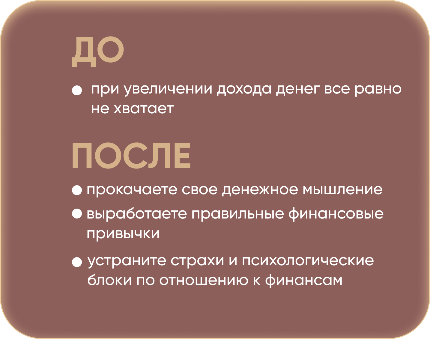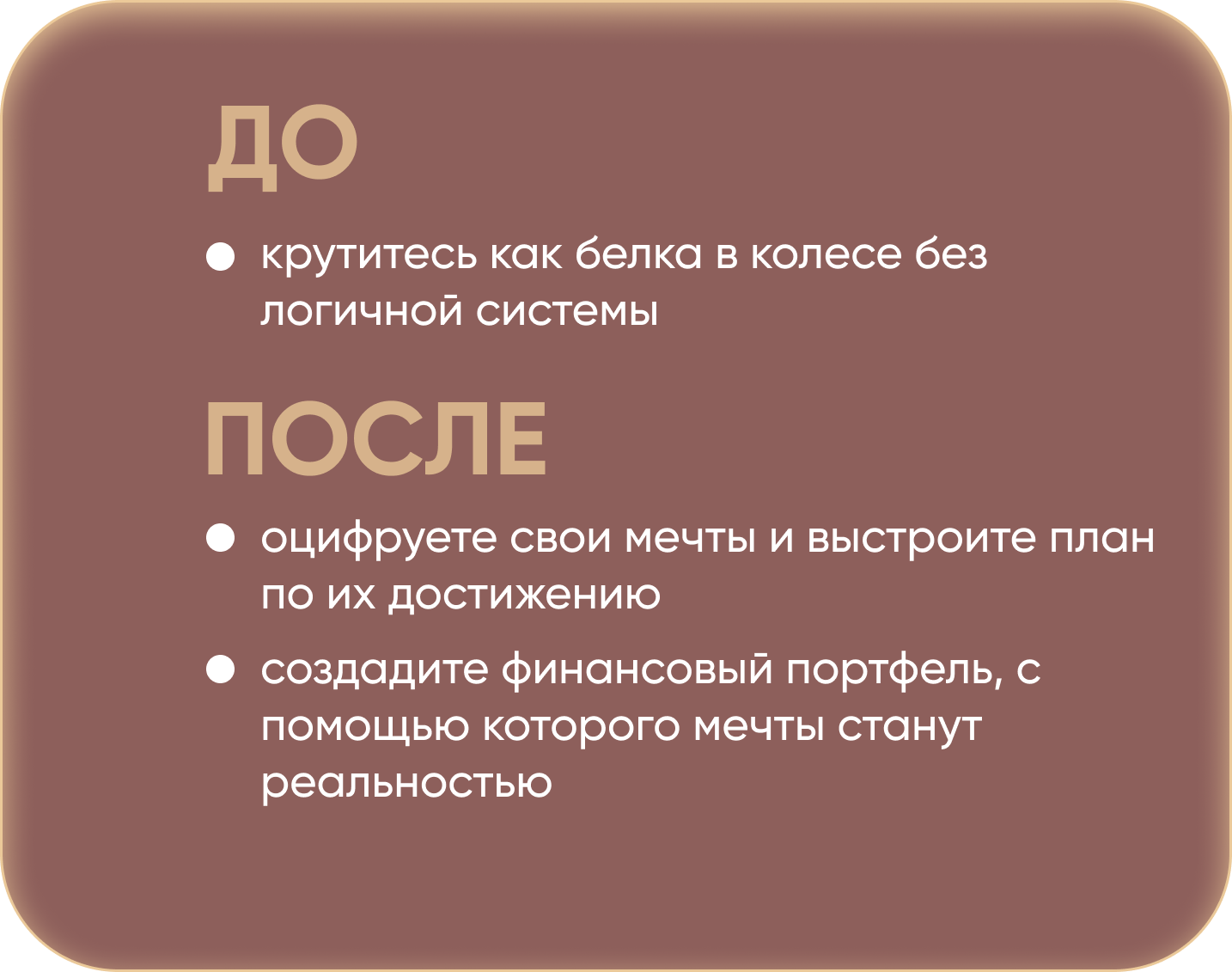 Я не просто теоретик, а практик. Я лично прошла путь от долговой ямы в 2008 году до финансово обеспеченного человека. Даю только те инструменты, которые сама применяю