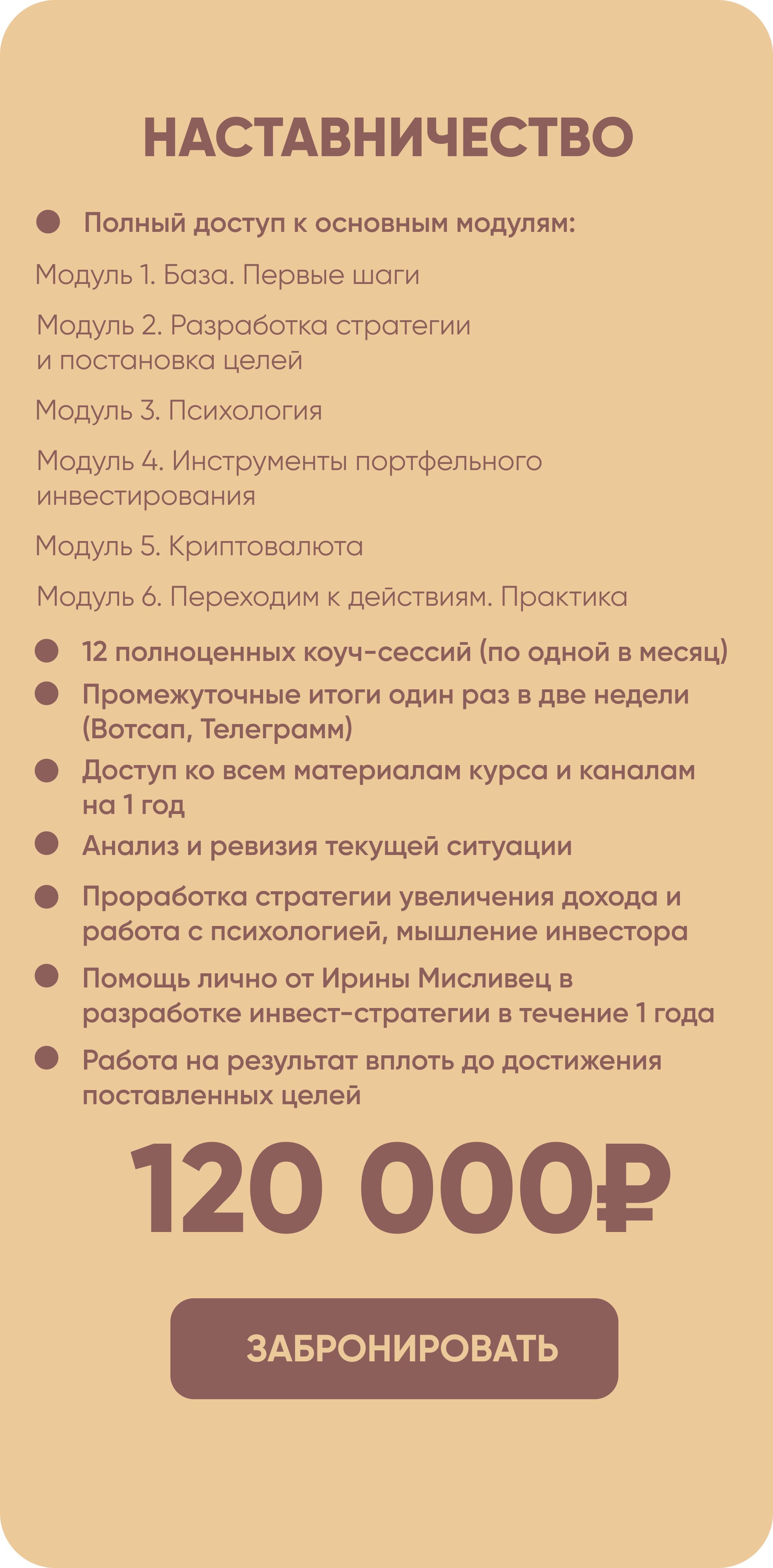 Узнаете про методике накопления и инвестирования, по которой с 2019 года мои клиенты сформировали капиталы суммарно более чем на 120 млн рублей
